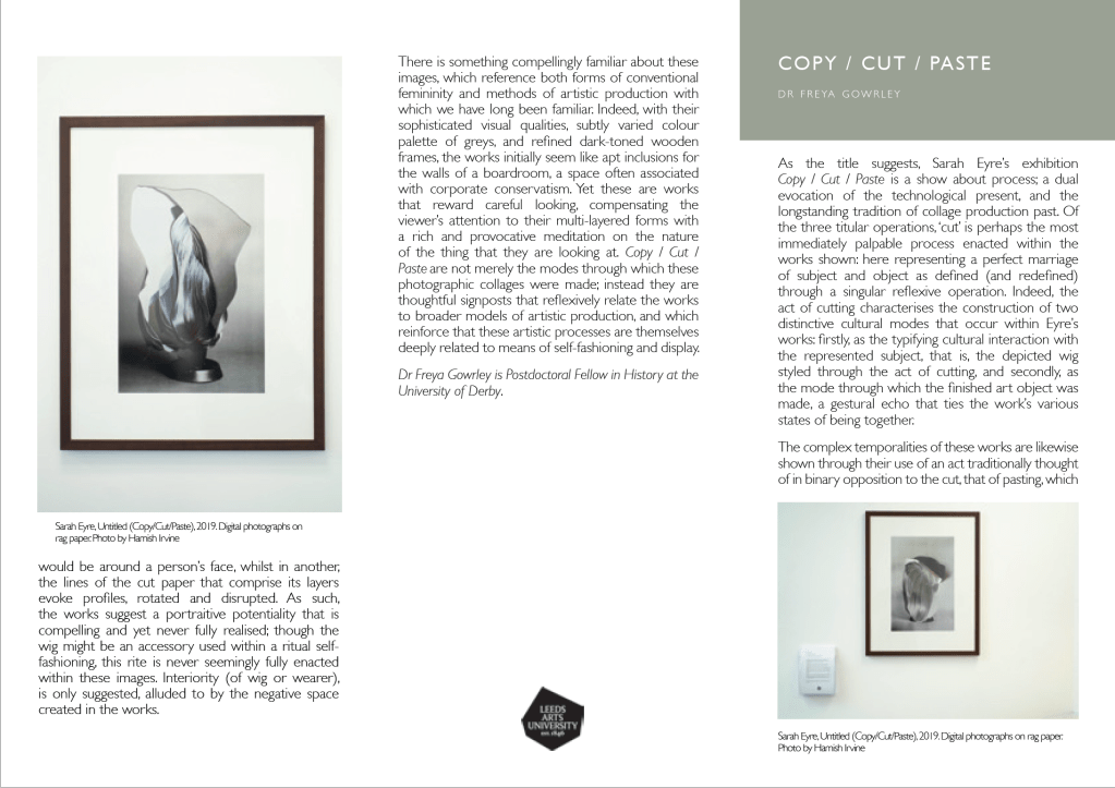 Essay by Dr Freya Gowrley to accompany ‘Copy / Cut / Paste’ exhibition at Leeds Arts University
